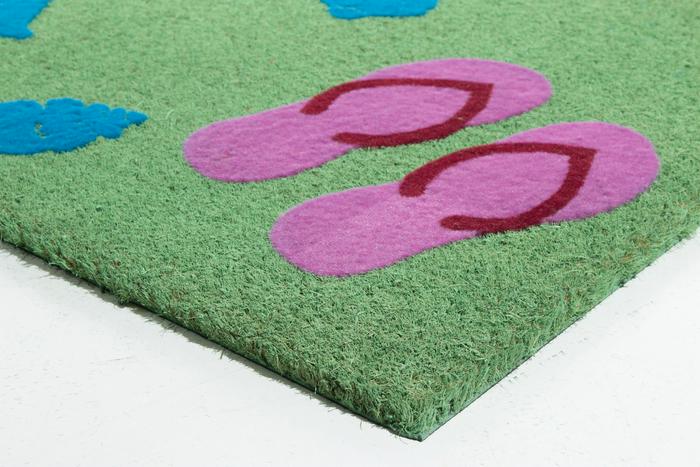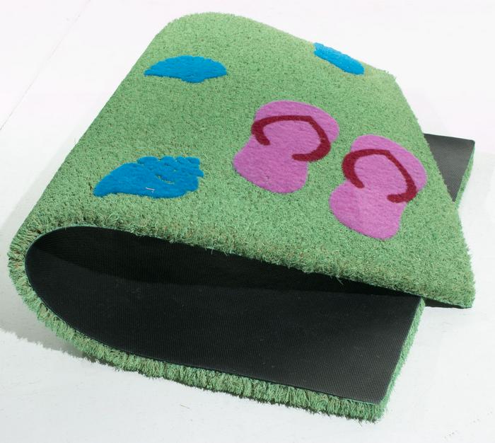 PVCF mats are designed with a flocked pattern. These attractive mats are made with coir and PVC backing and about ½" thick.